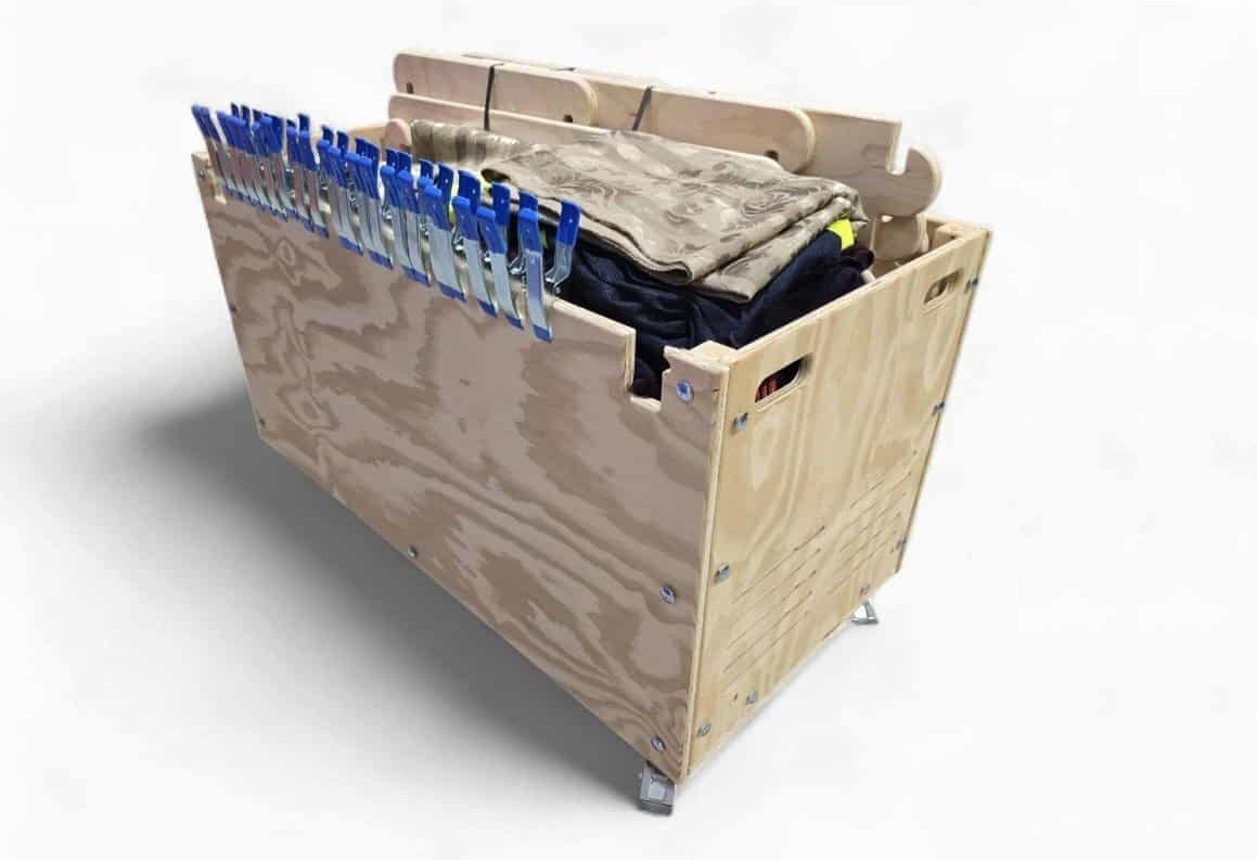 - Boordevol planken, stevige en flexibele buizen, doeken, klemmen